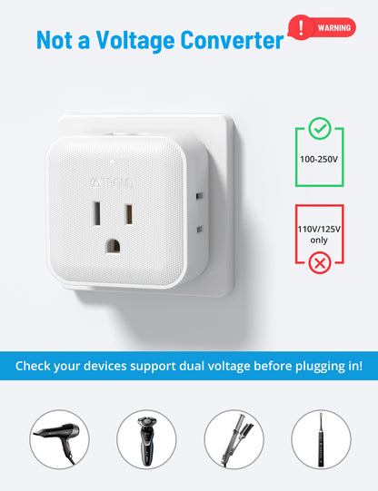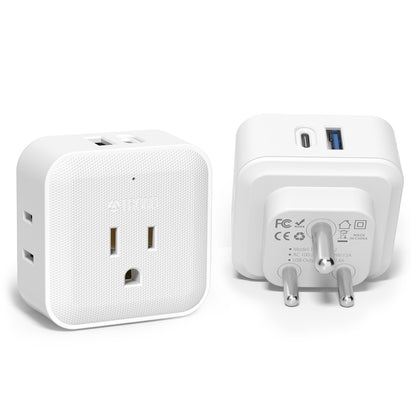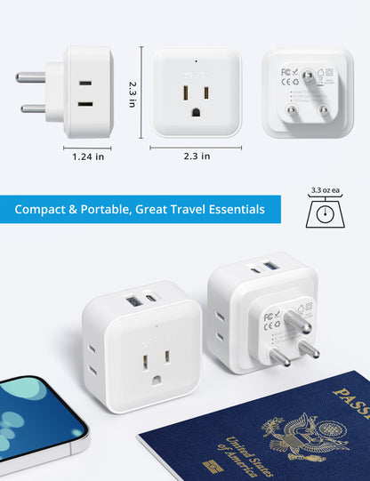 2. 6 in 1 India power adapter. This India converter plug quickly expands a single Indian outlet to 4 USA sockets, with additional USB slots, both USB A and USB C are built in, so you can charge nearly any device, new or legacy in one place. Great India travel essentials.